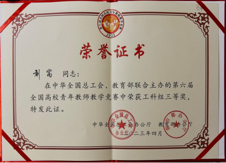 近日,由中華全國總工會(hui) 、教育部聯合主辦,中國教科文衛體(ti) 工會(hui) 、教育部教師工作司承辦,北京市教育工會(hui) 、清華大學協辦的第六屆全國高校青年教師教學競賽決(jue) 賽在清華大學舉(ju) 行。安陽工學院機械工程學院青年教師劉嵩代表河南省高校工科組參賽並榮獲三等獎。