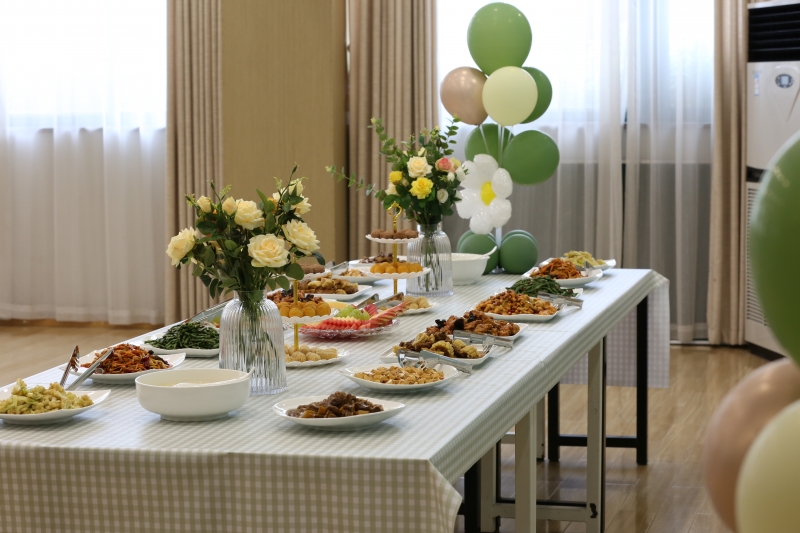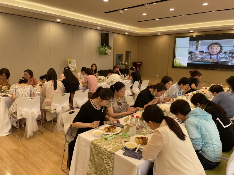 吹氣球、鋪台布、擺桌旗、放鮮花、打上一個(ge) 完美的蝴蝶結……在學校班主任工作坊老師們(men) 的精心準備和組織下,“夏食紀”家校主題活動拉開帷幕。學校班主任工作坊第一坊坊主楊一銘老師首先向家長們(men) 介紹了學校的基本情況,及學校對孩子們(men) 午餐膳食工作的重視。她說:“您今天品嚐到的,就是孩子們(men) 每天中午在校午餐的菜品。學校依據孩子們(men) 的年齡特點,本著粗細、葷素搭配合理的原則,注重食物的營養(yang) 均衡,同時用豐(feng) 富的花色品種,充分調動學生的食欲。”伴隨著舒緩輕柔的音樂(le) ,品嚐環節開始了。香味撲鼻的美食讓家長們(men) 不禁發出陣陣讚歎,孩子們(men) 的午餐已不再是手機上每周看到的文字,而是這一盤盤色香味俱全,能觸動嗅覺、喚醒味蕾的美食!