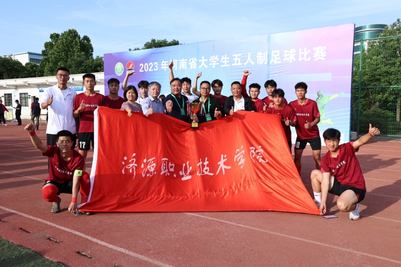 5月16至22日,2023年河南省大學生五人製足球比賽在黃河科技學院舉(ju) 行。比賽中濟源職業(ye) 技術學院隊員以飽滿的激情、昂揚的鬥誌、堅強的毅力全力以赴對待每一場比賽,經過6輪的激烈角逐,最終在23支參賽隊伍中脫穎而出,榮獲河南省五人製足球專(zhuan) 科男子甲組冠軍(jun) ,創造了濟源職業(ye) 技術學院曆史以來三大球項目的最佳戰績,同時也創造了濟源男子足球參加河南省各項賽事的最佳戰績。為(wei) 濟源職業(ye) 技術學院建校三十周年獻上了一份厚禮。趙慶輝獲得優(you) 秀教練員,隊員趙傑、吉浩傑獲得優(you) 秀運動員。