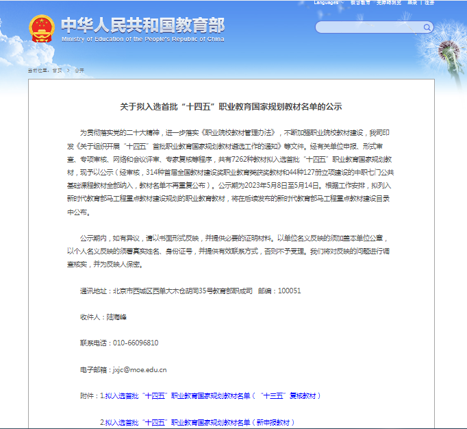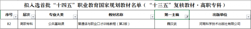 近日,教育部發布了《關(guan) 於(yu) 擬入選首批“十四五”職業(ye) 教育國家規劃教材名單的公示》,濮陽職業(ye) 技術學院 2 部教材入選“十四五”職業(ye) 教育國家規劃教材。其中《高等數學》為(wei) 新申報入選,《普通話與(yu) 職業(ye) 口才訓練教程》為(wei) “十三五”複核入選。這是我校深入貫徹落實黨(dang) 中央、國務院關(guan) 於(yu) 教材建設的決(jue) 策部署和《國家職業(ye) 教育改革實施方案》相關(guan) 要求的重要成果,也是學校“雙高”建設重大標誌性成果。
