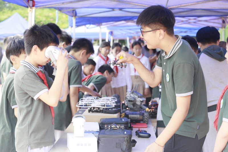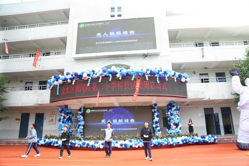 全校師生一起觀看了開幕式表演,花式飛行秀、無人機表演、無人機投籃、無人機穿越障礙、水火箭和電火箭表演、車模表演……高科技炫酷展示引得學生們(men) 陣陣掌聲。隨後,學校黨(dang) 總支書(shu) 記楊關(guan) 群宣布金水區黃河路第二小學“科學夢想 智創未來”科技活動周活動開幕。