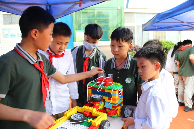 本次科技活動周主要開展的活動有創作類、實驗類、科普類、闖關(guan) 類、研學類。同學們(men) 製作的手工作品帶你置身科技的海洋。牛頓擺、電風扇、水力風車、水火箭、滑雪台活靈活現。利用樂(le) 高積木搭建的各種模型吸引了很多同學的興(xing) 趣。一個(ge) 個(ge) 科學作品呈現在同學們(men) 的眼前,引得同學們(men) 駐足觀看,驚歎不已。