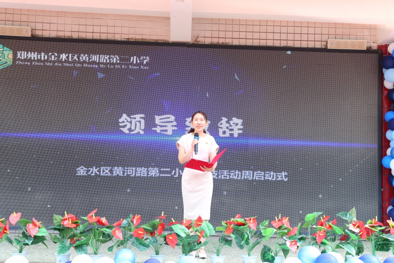 金水區黃河路第二小學校長時蒙致辭。她表示,科技活動周的舉(ju) 辦,對引領校園文化,弘揚科學精神,增強創新意識,提高學生的綜合素質具有非常重要的作用。她希望孩子們(men) 用科學武裝自己的頭腦,培養(yang) 獨立思考、自主探究的創新精神,努力成為(wei) 一個(ge) 具有科學夢想和不懈追求的人。