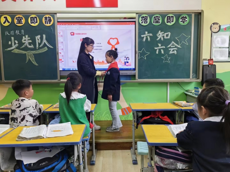培訓由學校少先隊大隊輔導員宋予鵬主講。各中隊輔導員老師向隊員介紹了少先隊隊名、隊旗、隊徽、隊禮以及相關(guan) 標誌等;然後,帶領大家觀看視頻《致敬紅領巾》,對少先隊隊史進行講解,並對少先隊“六知六會(hui) 一做”進行全麵解析,使大家知悉少先隊員必須會(hui) 佩戴紅領巾、會(hui) 敬隊禮、會(hui) 呼號、會(hui) 唱隊歌、會(hui) 背入隊隊詞、會(hui) 寫(xie) 《入隊申請書(shu) 》,入隊之前還應為(wei) 人民做一件好事。