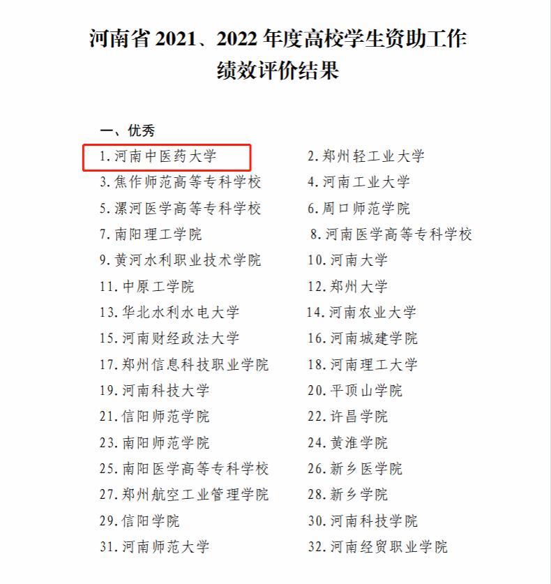 日前,kaiyun体育登入口、國家開發銀行河南省分行發布了《全省高校和省屬中職學校2021、2022年度學生資助工作績效評價(jia) 結果的通知》,河南中醫藥大學在全省參評的155所高校中榮獲優(you) 秀等次第一名,這是學校第11次位列全省高校學生資助工作績效評價(jia) 優(you) 秀等次第一名,學校《千裏寄喜報,家校育英才》被認定為(wei) 全省學生資助工作創新項目。