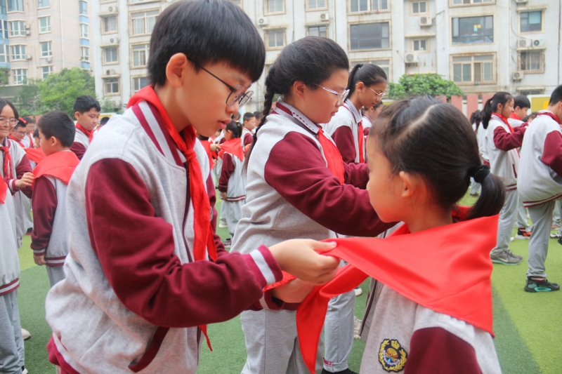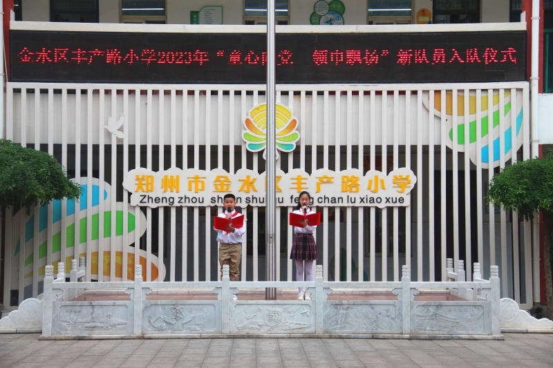 為(wei) 深入學習(xi) 貫徹落實習(xi) 近平總書(shu) 記關(guan) 於(yu) 少年兒(er) 童和少先隊工作的重要指示精神,進一步增強少先隊組織的光榮感和吸引力,增強少先隊員光榮感和組織歸屬感,5月26日上午,金水區豐(feng) 產(chan) 路小學在操場舉(ju) 行了以“童心向黨(dang) 領巾飄揚”為(wei) 主題的新隊員入隊儀(yi) 式。一年級128名、二年級120名同學光榮地加入中國少年先鋒隊,戴上鮮豔的紅領巾,成為(wei) 少先隊組織的一員。