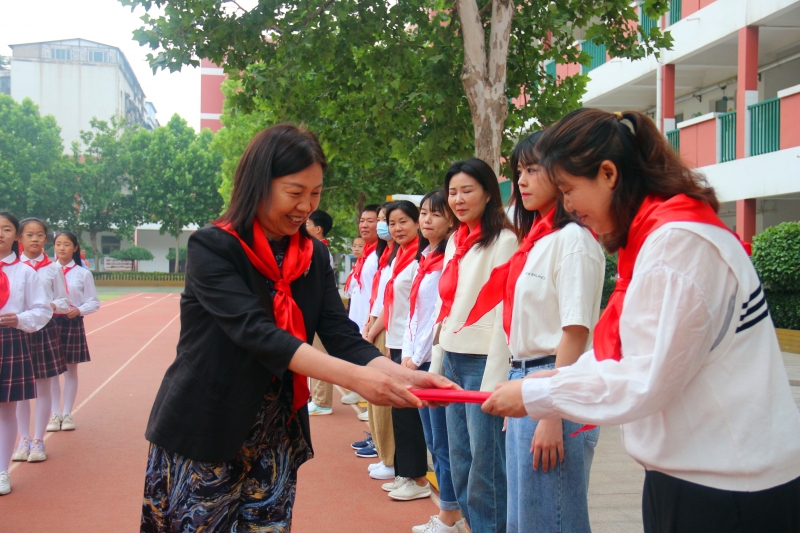 陳鵬校長在入隊儀(yi) 式上用親(qin) 切的話語向新隊員們(men) 表達了祝賀和殷切的希望、對輔導員老師的愛與(yu) 付出表示真誠的感謝。希望全體(ti) 少先隊員們(men) 牢記胸前鮮豔紅領巾的寓意,勇敢地擔負時代的重托,在星星火炬旗幟的指引下,向著夢想遠航!