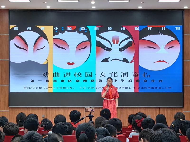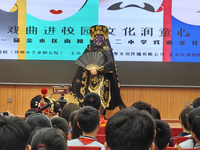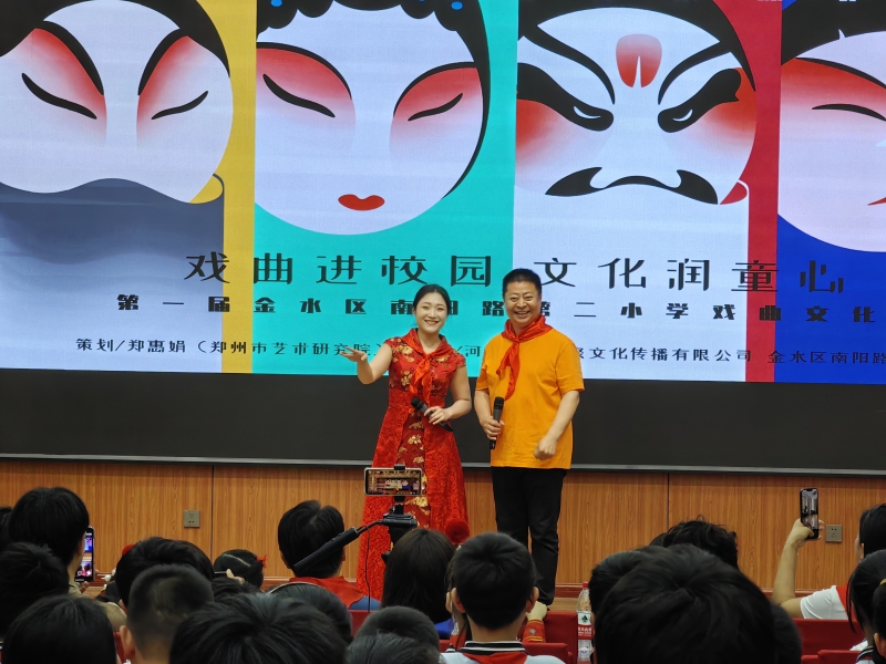 戲曲,是中華傳(chuan) 統文化瑰寶,是無形的曆史文化遺產(chan) 。為(wei) 大力弘揚與(yu) 傳(chuan) 承中華優(you) 秀傳(chuan) 統文化,讓同學們(men) 感受傳(chuan) 統戲曲,在六一國際兒(er) 童節到來之際,金水區南陽路第二小學開展了戲曲進校園活動,邀請孟祥禮中原戲曲專(zhuan) 業(ye) 演出團為(wei) 全體(ti) 師生和家長代表送來了一場視聽盛宴。