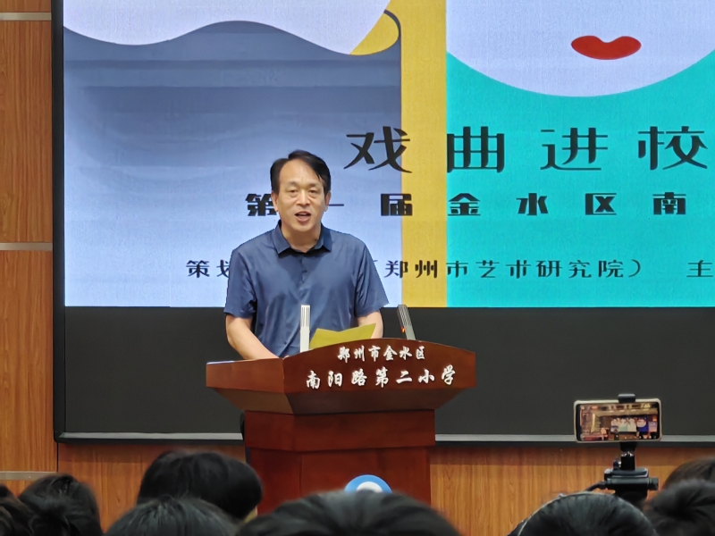 鄭州市金水區南陽路第二小學黨(dang) 支部書(shu) 記、校長金輝為(wei) 活動致辭。他指出,戲曲文化是中華優(you) 秀傳(chuan) 統文化中的瑰寶,傳(chuan) 遞著真善美的正能量,倡議同學們(men) 通過聆聽德藝雙馨的藝術家們(men) 精彩劇目,零距離了解河南戲曲文化,體(ti) 會(hui) 戲曲深厚的文化底蘊。