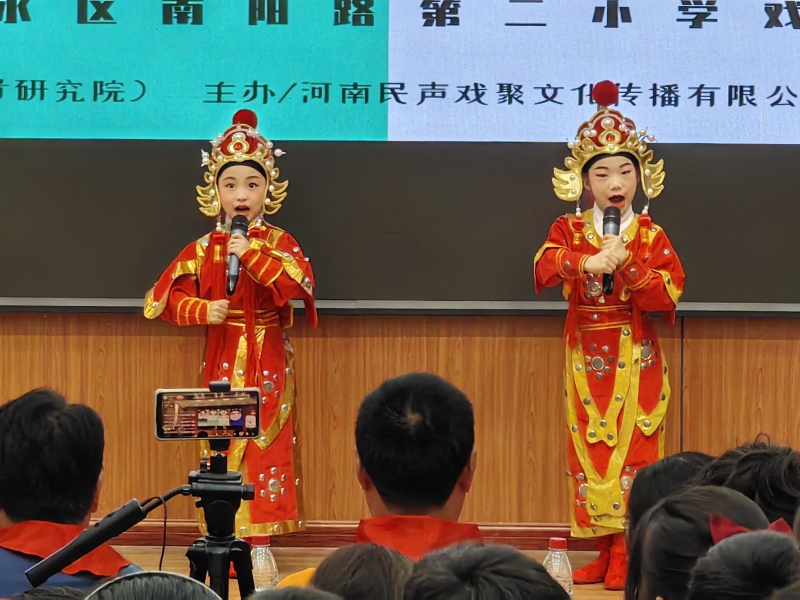 戲曲進校園活動,為(wei) 同學們(men) 打開了近距離感受戲曲藝術魅力的窗口,在“雙減”政策背景下,金水區南陽路第二小學利用豐(feng) 富多彩的活動培養(yang) 學生的興(xing) 趣愛好,促進學生五育並舉(ju) 、全麵發展,讓同學們(men) 在潛移默化中受到了傳(chuan) 統文化的熏陶,同學們(men) 自覺親(qin) 近戲曲經典,感受傳(chuan) 統戲曲文化的魅力和濃厚的河南地方戲曲韻味。