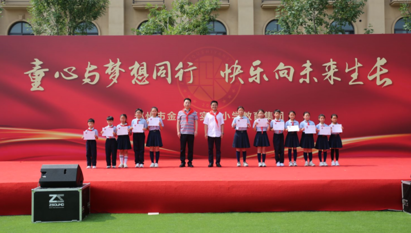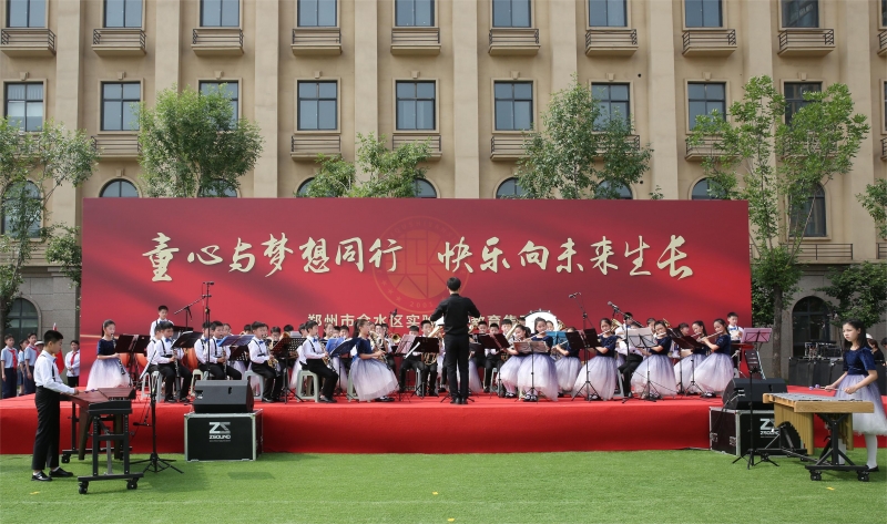 5月31日上午,金水區實驗小學教育集團科教園校區舉(ju) 行“童心與(yu) 夢想同行 快樂(le) 向未來生長”——“六一”綜合素質展示活動。