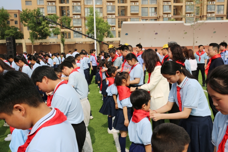 金水區實驗小學教育集團黨(dang) 支部書(shu) 記、校長羅禕璠在活動中致辭。對蒞臨(lin) 活動的各位嘉賓表示熱烈的歡迎,對全校兒(er) 童表示節日的問候,並希望孩子們(men) 刻苦學習(xi) ,掌握科學文化知識,健康成長,做國家的棟梁之才。在大家的期盼中,主持人宣布少先隊新隊員入隊名單,新隊員們(men) 個(ge) 個(ge) 昂首挺胸,臉上難掩激動的心情,眼中閃著期盼的光芒。從(cong) 這一天開始,他們(men) 戴上鮮豔的紅領巾。