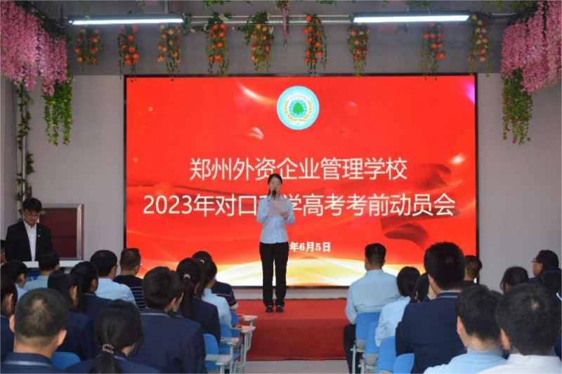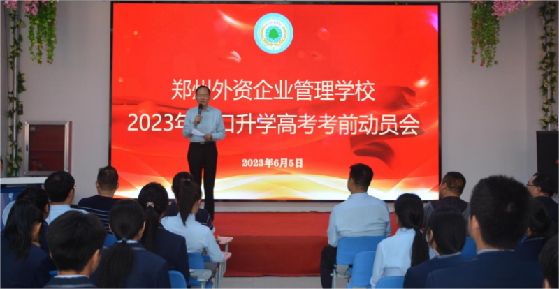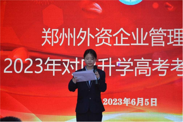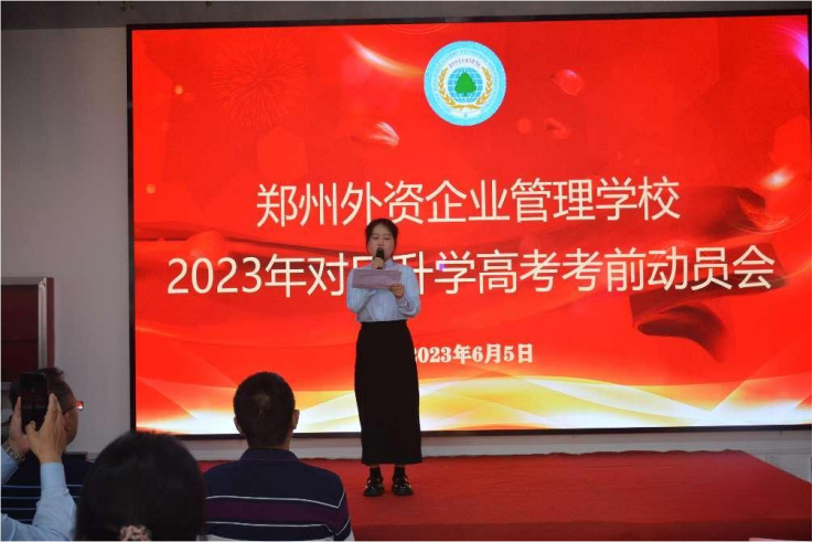 為(wei) 進一步激勵參加對口升學的外資學子備戰2023年高考,6月5日,鄭州外資企業(ye) 管理學校在自信大舞台上舉(ju) 行了2023年對口升學考前動員會(hui) 。