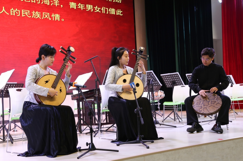 一曲歡快而活潑的《阿細跳月》拉開了音樂(le) 會(hui) 的序幕,其輕快的節奏給人帶來舒服、愉悅的感受;樂(le) 隊《茉莉花》將傳(chuan) 統古典與(yu) 現代民樂(le) 結合,給人以獨特的音樂(le) 享受;笛子獨奏《鞭催馬運糧忙》,將運糧車隊來回奔忙的熱鬧紅火場麵展現在聽眾(zhong) 麵前;中阮獨奏《火把節之夜》,展現了人們(men) 在火把節載歌載舞的歡樂(le) 景象;樂(le) 隊合奏《彩雲(yun) 追月》幽淡的夜幕背景下,雲(yun) 月相逐,相映成趣……一曲曲經典樂(le) 曲讓孩子們(men) 沉浸在美好的音樂(le) 世界。