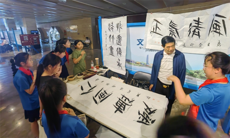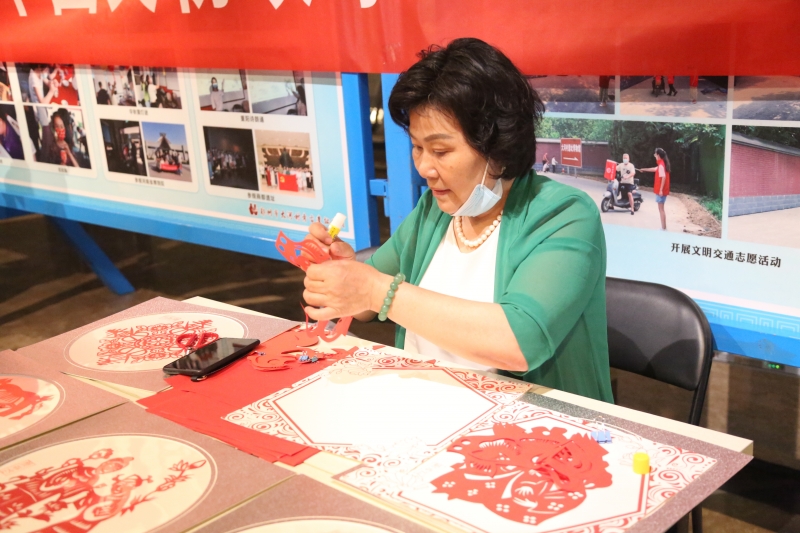 鄭東(dong) 新區文化館組織轄區內(nei) 非物質文化遺產(chan) 代表性項目傳(chuan) 承人積極參與(yu) 此次活動,以靜態展示和動態演繹兩(liang) 種形式向群眾(zhong) 進行公開公益展演。活動現場,非物質文化遺產(chan) 懸針篆、詩竹畫傳(chuan) 承人為(wei) 群眾(zhong) 講解書(shu) 法起源及項目特點,並現場潑墨揮毫、題福送字,吸引眾(zhong) 多學生駐足觀看、競相參與(yu) 互動。剪紙、麵塑、汴繡傳(chuan) 承人在展示優(you) 秀作品的同時,還現場教授技藝技巧。
