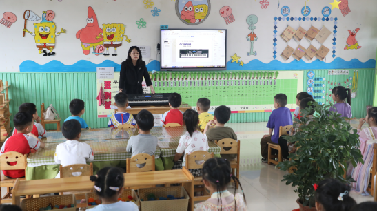 在東(dong) 和店鎮中心幼兒(er) 園,藝術教學部副主任馬嬌為(wei) 幼兒(er) 園的小朋友們(men) 進行了電子琴教學,教授孩子們(men) 認識琴鍵、感受音高,學習(xi) 音符和節奏,彈唱兒(er) 歌《小星星》,引導上台彈奏電子琴,在孩子們(men) 心中播種下音樂(le) 的種子,期待萌芽生長、花開綻放。
