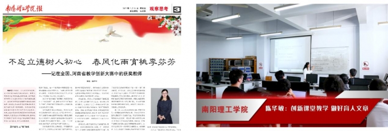 校報等相關(guan) 新聞媒體(ti) 對她進行了《十年磨劍,立德樹人》的報道;在學校“喜迎二十大 奮發向未來”係列報道活動中,黨(dang) 委宣傳(chuan) 部對她進行了《創新課堂教學 做好育人文章》的專(zhuan) 題報道,如圖3所示,產(chan) 生了較大影響,輻射作用明顯。