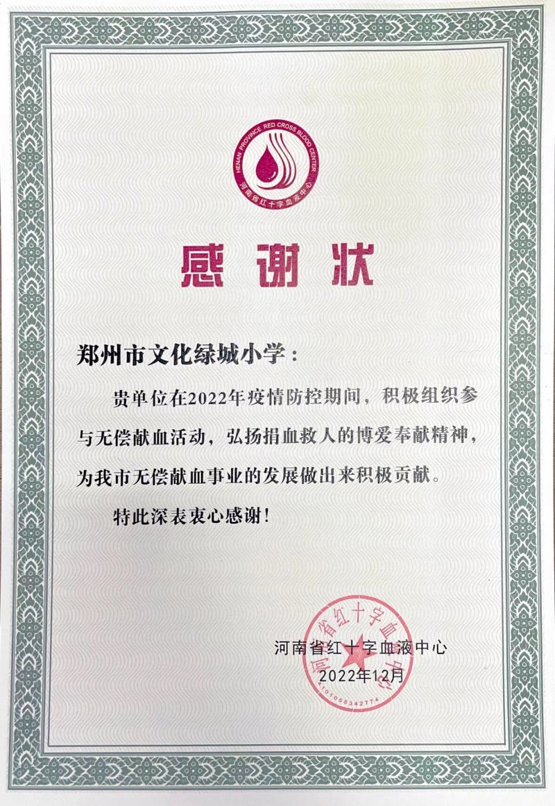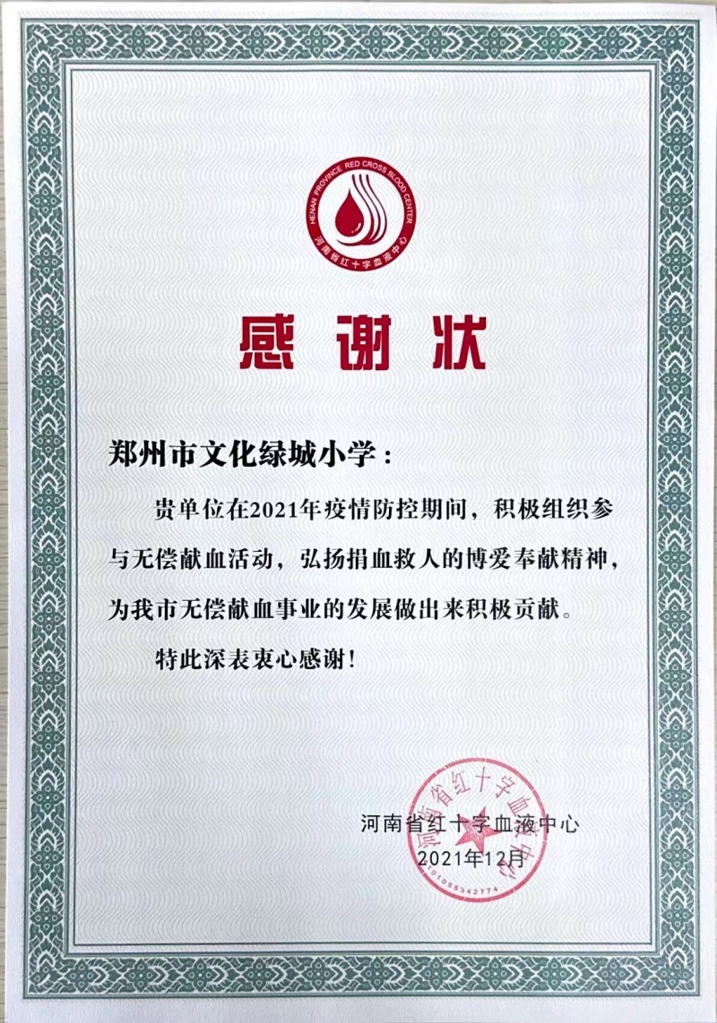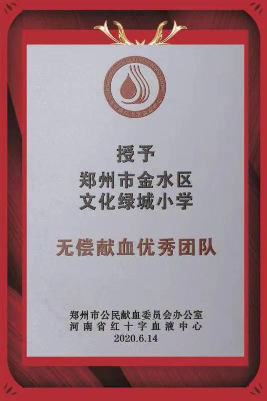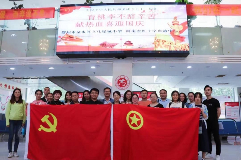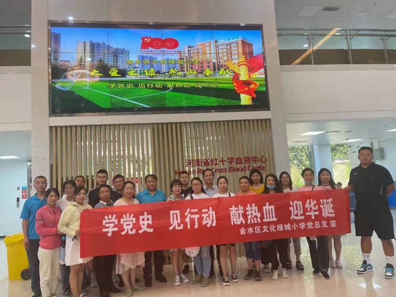 2020年6月,在中國共產(chan) 黨(dang) 建黨(dang) 99周年之際,作為(wei) 鄭州市無償(chang) 獻血優(you) 秀團體(ti) ,金水區文化綠城小學黨(dang) 總支向全體(ti) 教師發出倡議,獻出一份熱血為(wei) 生命護航,奉獻一片愛心為(wei) 黨(dang) 旗增色,以實際行動紀念黨(dang) 的生日。