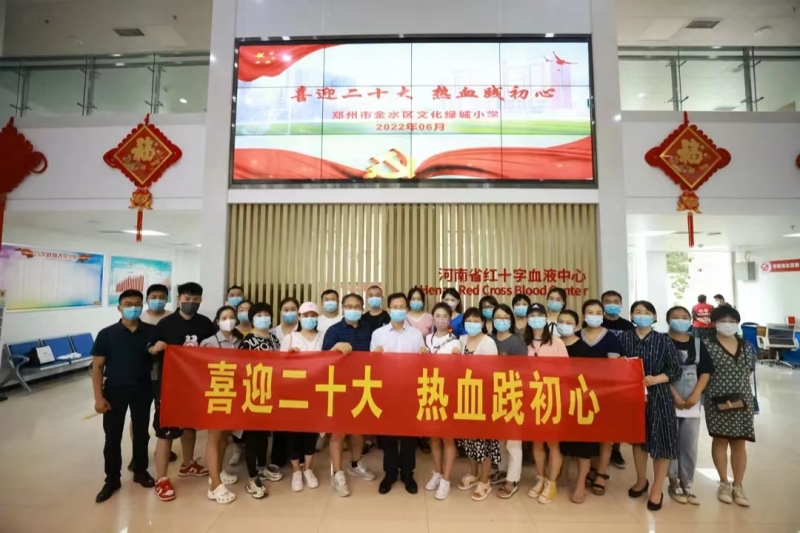 2022年6月,為(wei) 進一步弘揚“奉獻、友愛、互助、進步”誌願精神,在七一建黨(dang) 節來臨(lin) 之際,金水區文化綠城小學黨(dang) 總支、團支部組織黨(dang) 員、團員教師開展了“喜迎二十大,熱血踐初心”無償(chang) 義(yi) 務獻血活動。