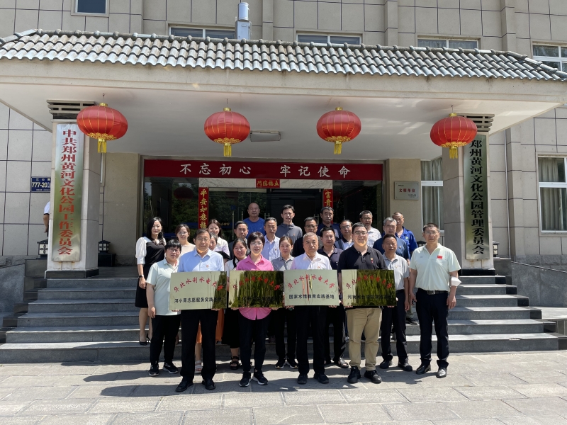 為(wei) 加強黨(dang) 性教育,提高黨(dang) 性修養(yang) ,促進華北水利水電大學水務培訓中心主題教育工作縱深發展,近日,水務培訓中心黨(dang) 總支書(shu) 記孟治剛、主任何楠,帶領中心教職工代表赴鄭州黃河文化公園舉(ju) 行“追尋領袖足跡,踐行黃河戰略”主題黨(dang) 日暨“文化研究實踐基地”“國家水情教育基地”“河南河長學院實踐基地” “河小青誌願服務實踐基地”揭牌儀(yi) 式活動。