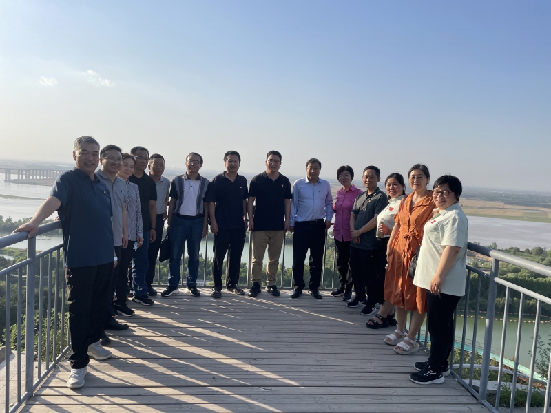 揭牌儀(yi) 式結束後,鄭州黃河文化公園黨(dang) 工委委員、管委會(hui) 副主任、服務中心黨(dang) 委負責人杜振宇帶領大家先後到毛主席視察黃河處、習(xi) 近平總書(shu) 記視察黃河處、桃花峪引水口、源水供應部工作現場、邙山提灌站泵房車間、鄭州黃河國家地質博物館、炎黃廣場等地參觀學習(xi) ,重溫了毛主席、習(xi) 近平總書(shu) 記視察黃河的重要指示,現場參觀了鄭州市飲用水源地保護情況,實地感受了黃河的雄偉(wei) 壯美以及博大精深黃河文化傳(chuan) 承弘揚等情況。雙方結合工作實際,圍繞學思踐悟習(xi) 近平生態文明思想、黃河流域生態保護和高質量發展戰略展開深入交流,圍繞“踐行黃河戰略、傳(chuan) 承黃河文化、講好黃河故事”等工作進行深入探討。
