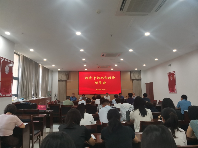 為(wei) 進一步加強濮陽醫專(zhuan) 幹部隊伍建設,加快培養(yang) 複合型人才,促進校院合作,6月15日下午,濮陽醫學高等專(zhuan) 科學校在易明樓六樓會(hui) 議室召開校院幹部雙向掛職動員會(hui) 。全體(ti) 校領導班子成員及第二附院醫院班子成員出席。所涉及各院係部負責人及“雙向掛職”人員共62人參會(hui) 。會(hui) 議由副校長謝法綱主持。