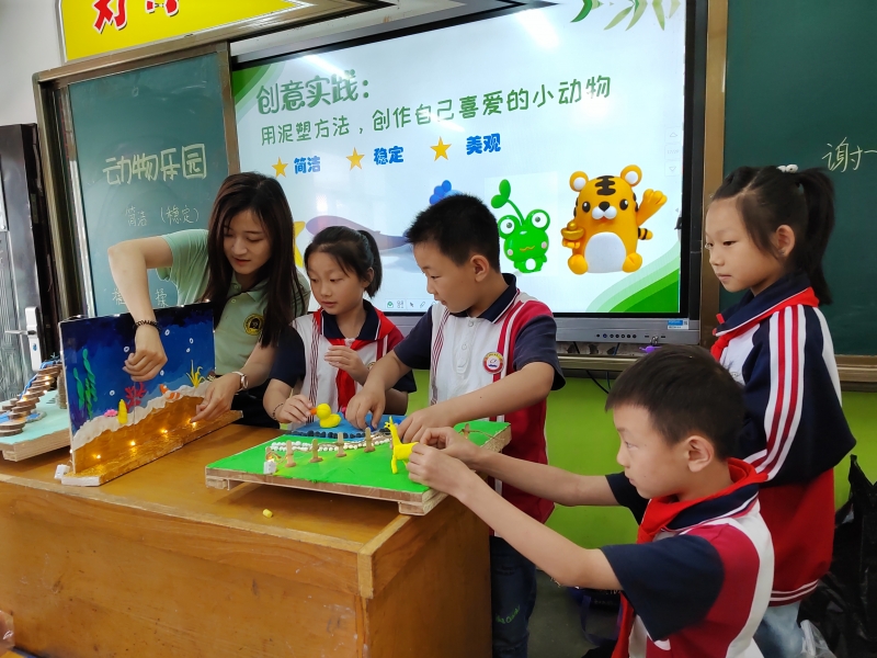 謝青老師執教《動物樂(le) 園》一課,帶領學生用彩色黏土創作動物,借助活動引導學生開動腦筋、發散思維。在謝老師的巧妙引導下,學生不僅(jin) 了解了泥塑知識,掌握了泥塑的使用方法,而且在動手體(ti) 驗中增強了文化自信,升華了個(ge) 人情感,領悟了與(yu) 動物和諧共生的意義(yi) 。