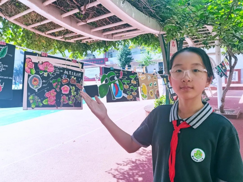 黃河路二小學生李沫的作品是《桃花》,她說:“這是我製作的桃花的自然筆記,通過這幅畫,讓我了解到了桃花的生長過程及它的用途,我感覺很有意思。”