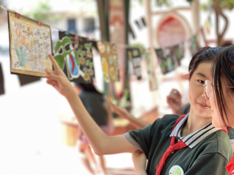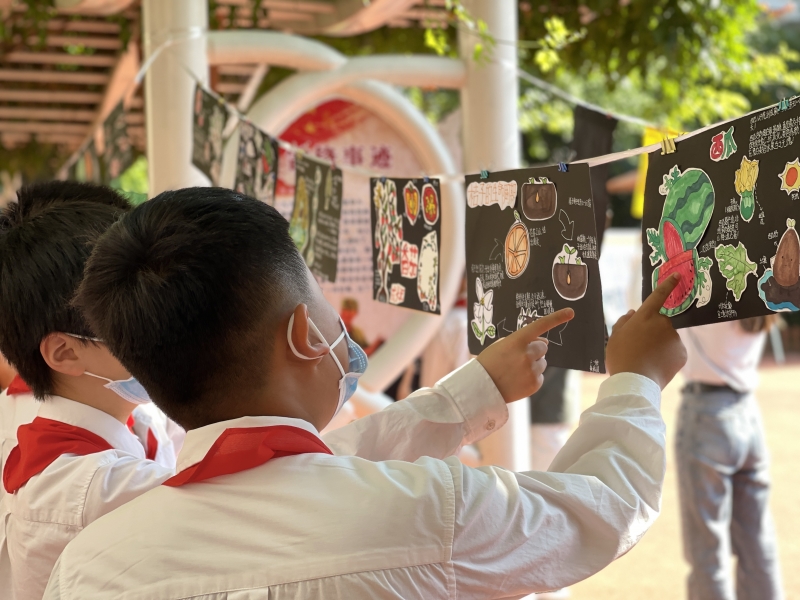 6月14日,在金水區黃河路第二小學操場上,近百幅內(nei) 容豐(feng) 富且涵蓋麵廣的自然筆記作品迎著朝陽,在微風中向師生們(men) 展示著自己。