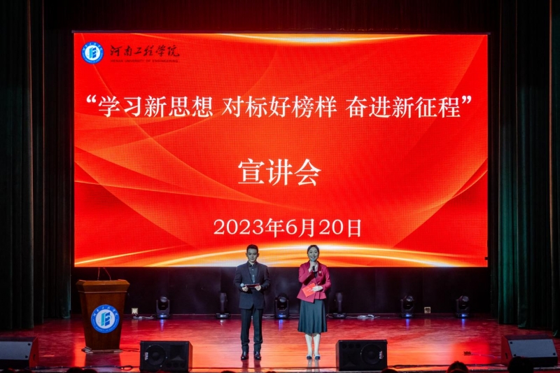 為(wei) 充分發揮“河工榜樣”示範引領作用,教育引導廣大黨(dang) 員幹部和師生學習(xi) 榜樣、爭(zheng) 當先進,擔當作為(wei) 、建功立業(ye) ,推進學習(xi) 貫徹習(xi) 近平新時代中國特色社會(hui) 主義(yi) 思想主題教育走深走實,6月20日下午,河南工程學院舉(ju) 辦“學習(xi) 新思想 對標好榜樣 奮進新征程”宣講會(hui) 。省委主題教育第二十四巡回指導組組長劉興(xing) 彬,指導組成員劉振衛、蘇舸和學校領導班子成員出席宣講會(hui) ,全體(ti) 中層領導人員、黨(dang) 支部書(shu) 記、組織員和新入黨(dang) 黨(dang) 員代表500餘(yu) 人參加會(hui) 議。