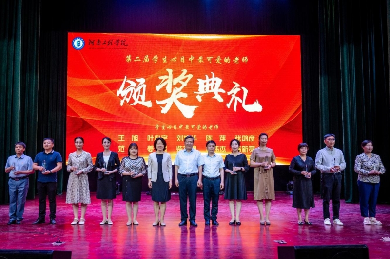 宣講會(hui) 中,舉(ju) 行了第二屆河南工程學院學生心目中最可愛的老師頒獎儀(yi) 式。第二十四指導組組長劉興(xing) 彬、校黨(dang) 委書(shu) 記劉永濤、校長李利英為(wei) 獲獎的10位教師頒發了獎杯,向他們(men) 表示祝賀並合影留念。