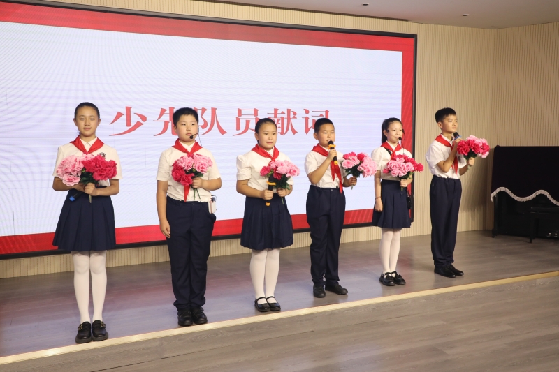 少先隊員代表肖一同、王語涵、尹紫伊、石瀟錦、張家耀、李明博向大會(hui) 獻詞。“時刻準備著”的錚錚誓言響徹會(hui) 場。這鏗鏘有力的誓言,增強了少先隊員們(men) 的光榮感和使命感,表達了每一名少先隊員為(wei) 黨(dang) 和祖國努力學習(xi) 、立誌報效祖國的決(jue) 心!