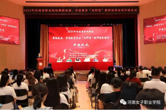 6月21日上午,2023年河南省職業(ye) 院校舞蹈表演、學前教育專(zhuan) 業(ye) “雙師型”教師培養(yang) 培訓在河南女子職業(ye) 學院開班。kaiyun体育登入口職業(ye) 教育與(yu) 成人處副處長任遠、河南女子職業(ye) 學院黨(dang) 委書(shu) 記李立峰、校長郭麗(li) 萍、校總督學徐紅娟,學前教育學院長王雪萍、音樂(le) 與(yu) 傳(chuan) 媒學院院長胡多歌等出席開班儀(yi) 式,來自全省職業(ye) 院校的百餘(yu) 名學員將開啟為(wei) 期45天的“雙師型”教師培養(yang) 培訓。