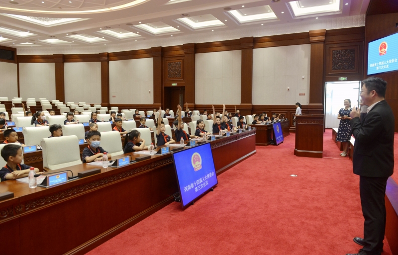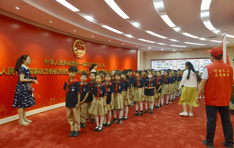 6月21日,省十四屆人大常委會(hui) 第11次主任會(hui) 議通過了《關(guan) 於(yu) 舉(ju) 辦河南省人大常委會(hui) 機關(guan) 開放日活動的工作方案》,25日下午,省人大常委會(hui) 機關(guan) 便迎來了一群來自河南省實驗小學的學生體(ti) 驗參觀。