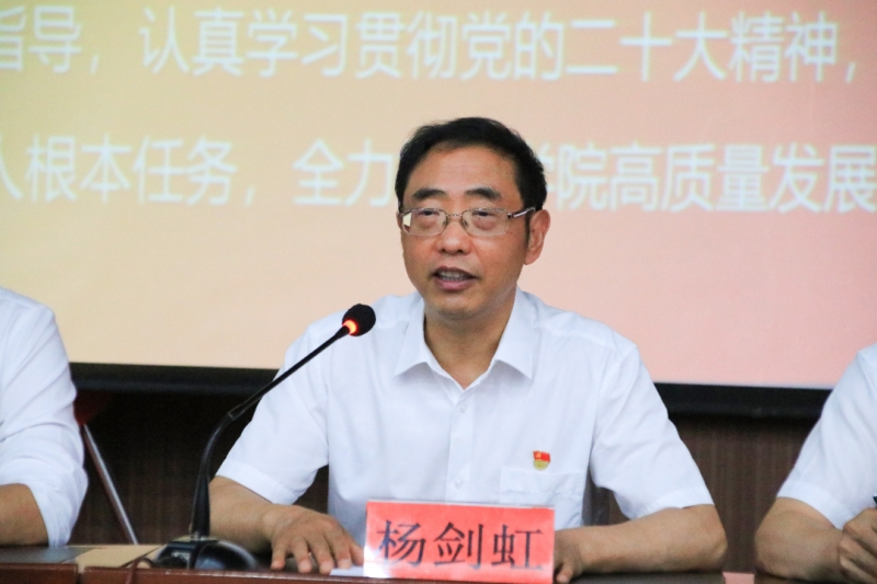 楊劍虹指出,初心燭照未來,榜樣引領時代。讓我們(men) 更加緊密地團結在以習(xi) 近平同誌為(wei) 核心的黨(dang) 中央周圍,以習(xi) 近平新時代中國特色社會(hui) 主義(yi) 思想為(wei) 指導,以今天受表彰的先進集體(ti) 和個(ge) 人為(wei) 標杆,以高質量黨(dang) 建引領高質量發展,為(wei) 建設教育強國貢獻鶴壁汽車工程職業(ye) 學院的力量,為(wei) 早日實現“雙高”校的建設目標而努力奮鬥!
