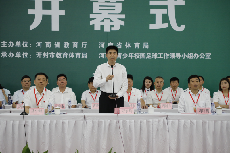 李湘豫致歡迎辭。他表示,開封市委市政府大力實施“足球振興(xing) ”“足球強市”戰略,在省委省政府的正確領導和省教育廳、省體(ti) 育局的指導幫助下,堅持“以賽促教、以賽促學、以賽促升”,擦亮校園足球特色教育品牌。開封將以這次“省長杯”聯賽為(wei) 契機,全麵提高校園足球普及水平和教學訓練質量,持之以恒、久久為(wei) 功,全力打造足球強市,為(wei) 全省、全國足球事業(ye) 發展和體(ti) 育強國建設貢獻開封力量。同時,開封作為(wei) 東(dong) 道主,將用心用情提供一流服務,全力以赴做好保障,讓全體(ti) 運動員、教練員、裁判員專(zhuan) 注賽事、盡情揮灑,讓各方賓客盡享賽事,充分感受千年古都的熱情魅力。