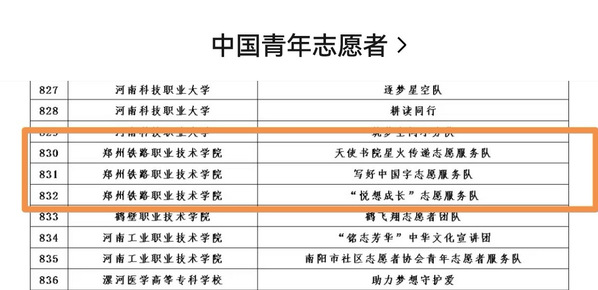 此次入選,是鄭州鐵路職業(ye) 技術學院誌願服務事業(ye) 與(yu) 鄉(xiang) 村振興(xing) 戰略相契合的重要標誌。學校入選的3支服務團隊將嚴(yan) 格落實共青團中央青年誌願者行動指導中心相關(guan) 要求,以昂揚的熱情、認真的態度開展好相關(guan) 誌願活動,在“小我”融入“大我”的青春實踐中展現新時代青年的精神風貌與(yu) 責任擔當。