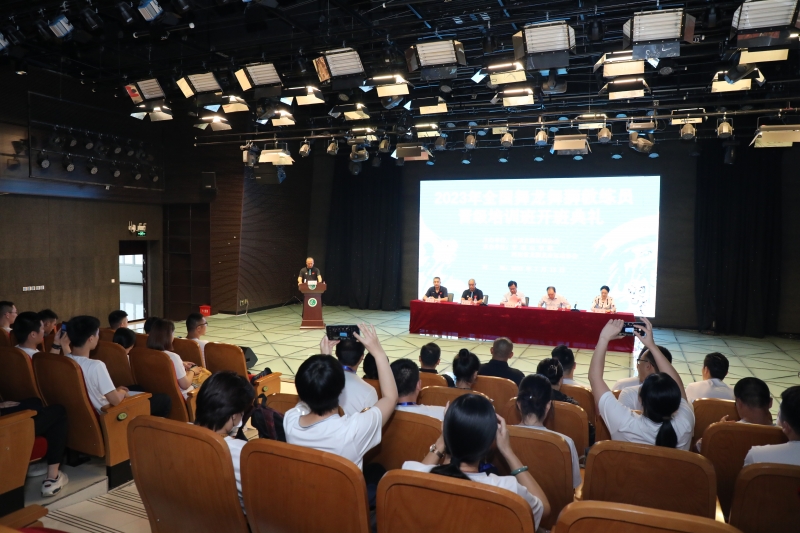 7月13日上午,由中國龍獅運動協會(hui) 主辦,平頂山學院、河南省龍獅龍舟運動協會(hui) 承辦的“2023年全國龍獅教練員晉級培訓班”開班儀(yi) 式在平頂山學院圖書(shu) 館601演播廳舉(ju) 辦。中國龍獅運動協會(hui) 副主席劉陶、黃欽添,平頂山學院副校長侯延民,中國龍獅運動協會(hui) 秘書(shu) 長王瑜出席會(hui) 議,體(ti) 育學院負責同誌及來自全國各學校的36名教師參加了培訓。