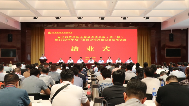 7月17日,商丘師範學院主題教育讀書(shu) 班(第二期)暨2023年中層幹部能力作風建設暑期培訓班結業(ye) 式在河南紅旗渠幹部學院舉(ju) 行。校領導和紅旗渠幹部學院黨(dang) 委委員、副院長劉樹偉(wei) 出席結業(ye) 式,全體(ti) 受訓學員參加了儀(yi) 式。黨(dang) 委書(shu) 記張誌堅講話。校長陳向煒主持。