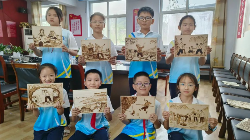 在暑期延時服務中,林州市西街學校積極探索“學科素養(yang) +基礎社團+特色社團”模式,以孩子們(men) 喜聞樂(le) 見的方式,大力開展主題社團活動。其中,以紅旗渠為(wei) 主題的烙畫社團,讓孩子們(men) 既學會(hui) 了烙畫基本技能,又在沉浸式體(ti) 驗中傳(chuan) 承了紅旗渠精神,深受孩子們(men) 喜愛。