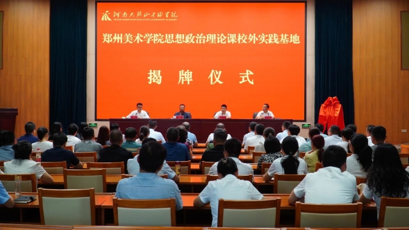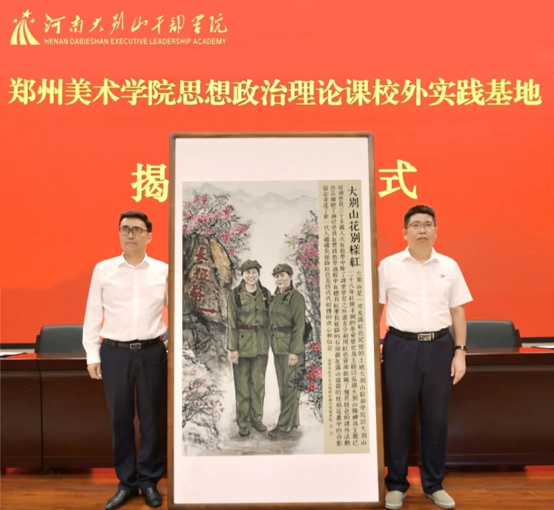 隨後,鄭州美術學院理事長王遠和河南大別山幹部學院黨(dang) 委委員、副院長汪震雷共同為(wei) “思想政治理論課校外實踐基地”揭牌。