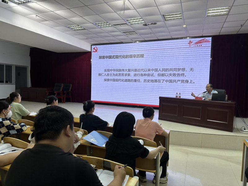 當天下午,學院邀請中共河南省委黨(dang) 校科學社會(hui) 主義(yi) 教研部主任、副教授、政治學博士李濤,為(wei) 全體(ti) 教師開展《以中國式現代化全麵推進中華民族偉(wei) 大複興(xing) 》專(zhuan) 題講座。李主任用娓娓道來的語言為(wei) 大家呈現出中國近現代發展變遷的畫麵,讓教職工深刻理解了中國式現代化的艱辛探索曆程和重大意義(yi) ,隻有矢誌不渝以黨(dang) 的宗旨、信念為(wei) 指引,自覺把個(ge) 人成才、進步發展融入黨(dang) 的教育事業(ye) ,用中國式現代化全力推進全麵實現教育現代化,才能在傳(chuan) 承中守正創新,堅定理想信念。
