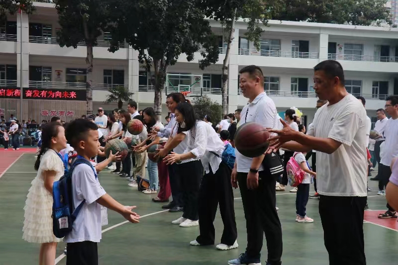 2023年9月1日,鄭州市金水區文化路第二小學舉(ju) 行了新生入學儀(yi) 式。學校黨(dang) 總支書(shu) 記弓書(shu) 玉帶領學校領導班子成員早早在校門口等候著可愛的“小小陽光少年”的到來。上午9點20分,一張張微笑的臉龐,一雙雙拉起的小手,帶著愛與(yu) 期待,家長和學生們(men) 如約而至,攜手走進文二校園,開啟了美好的小學生活。家長和學生走上紅毯,浸潤著濃鬱的學校文化。學校特色社團的展示更是精彩紛呈,啦啦操隊員活力四射、少年先鋒管樂(le) 團的表演激情澎湃、美術作品創意無限,吸引著家長和學生駐足欣賞。向陽花開,燦爛無比,同學們(men) 紛紛在向陽花主題背景牆合影留念,新的學習(xi) 生活由此開篇。