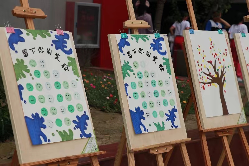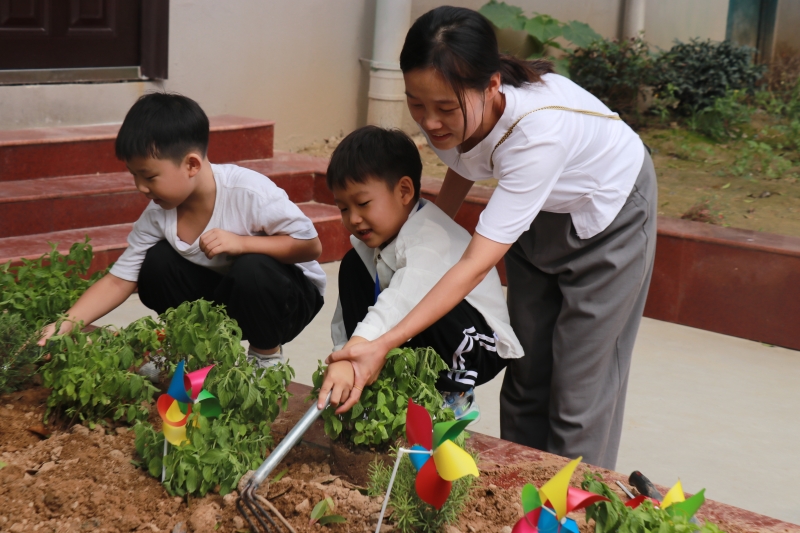 孩子們(men) 用稚嫩的小手,在班級樹上按上指印,寫(xie) 上自己的姓名,五彩斑斕的指紋圖案形成一幅幅代表自己班級的指紋樹,每一棵大樹象征著一個(ge) 班級大集體(ti) ,別具一格,孩子們(men) 用手指描繪著七彩童年。老師們(men) 將學生與(yu) 家長帶至耕種園,大家認真播種,並插上彩色風車。