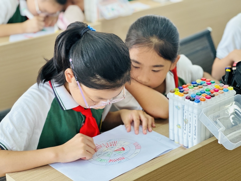 “認識自己”活動中,首先,學生在教師的鼓勵下大膽說出自己在學習(xi) 、生活中的困惑,在交流中尋找解決(jue) 問題的方法,促進同伴間的相互了解。其次,教師引導學生發現自己身上的十個(ge) 閃光點,並將其寫(xie) 在紙上,給予學生正麵引導。最後,教師指導學生通過塗顏色、畫線條的方式舒緩壓力,學生在思考塗色的過程中感受“心流”,開啟自我療愈。