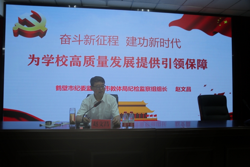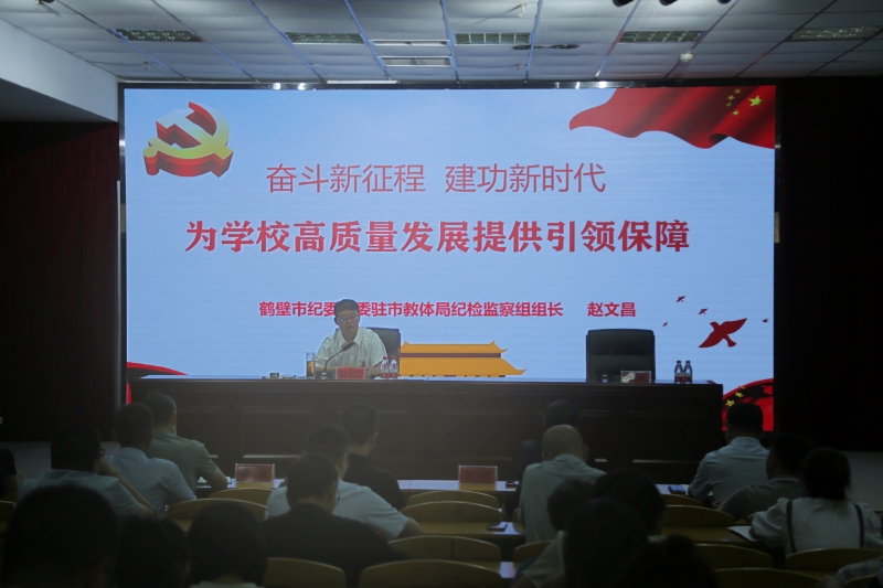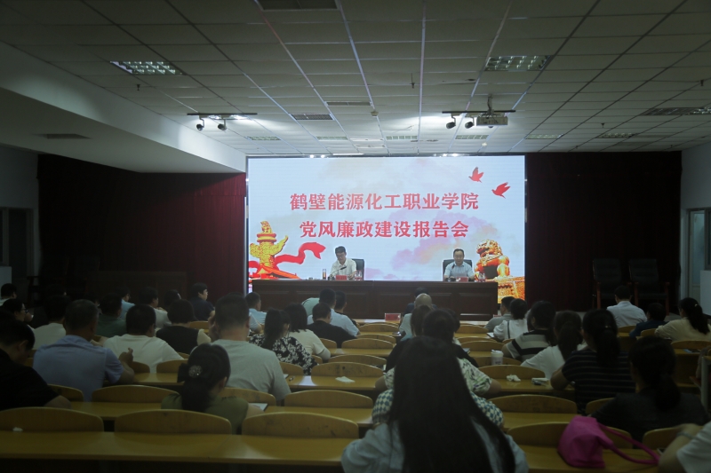 為(wei) 進一步貫徹落實全麵從(cong) 嚴(yan) 治黨(dang) 主體(ti) 責任,有效推進黨(dang) 風廉政建設,9月6日,鶴壁能源化工職業(ye) 學院邀請市教體(ti) 局黨(dang) 組成員、市紀委監委駐市教育體(ti) 育局紀檢監察組組長趙文昌為(wei) 全體(ti) 教職工作了一場黨(dang) 風廉政建設專(zhuan) 題報告會(hui) 。會(hui) 議由學院黨(dang) 委書(shu) 記楊會(hui) 明同誌主持,學校全體(ti) 領導班子成員、全體(ti) 教職工參加了會(hui) 議。