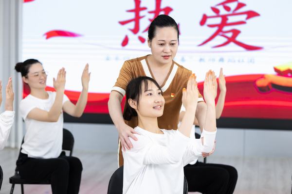 為(wei) 高質量排練好參演節目,在前期的準備工作中,由金水四幼黨(dang) 支部書(shu) 記、園長王誌芳遴選出的25名參演教師,在時間緊、任務重的情況下,利用下班、周末及節假日的時間投入到緊張的排練當中,在辦公室副主任蔡佳佳的指導下,老師們(men) 把每個(ge) 動作都進行分解教學,反複研磨細節、調整體(ti) 態,爭(zheng) 取把最好的狀態呈現給大家,不怕吃苦、團結奮進的精神,展現一個(ge) 富有凝聚力的團隊。