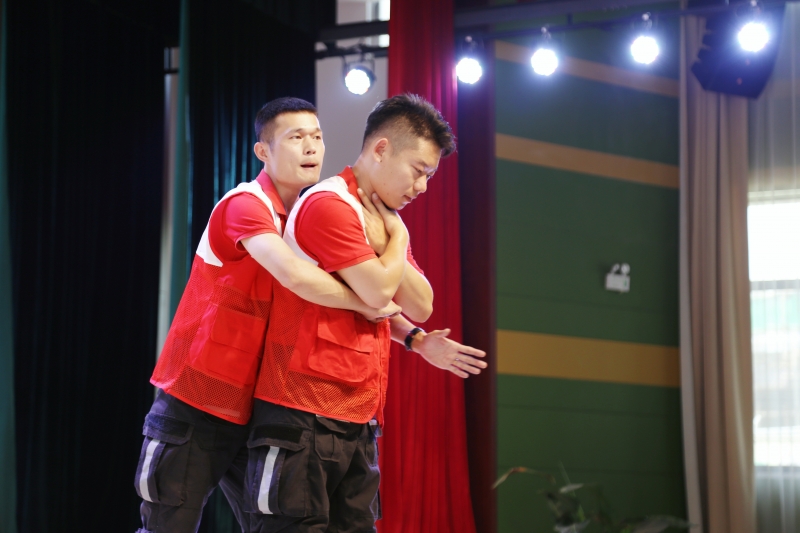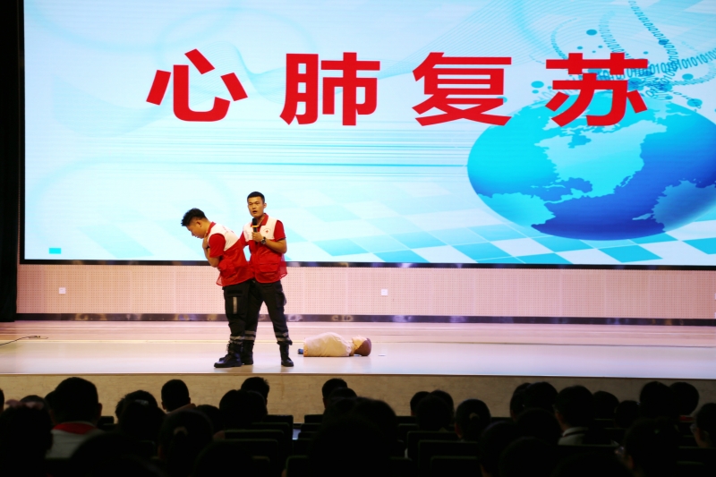 曾參與(yu) 2021新冠肺炎疫情防控工作以及誌願服務工作的程曉龍和袁高峰老師以通俗易懂的語言,係統講解並演練實施海姆立克法的相關(guan) 注意事項及步驟。隨後,程老師又就心肺複蘇的具體(ti) 操作流程進行了細致的理論說明和規範的操作——包括看到有人暈倒後先詢問、若無反應則大聲呼救、撥打120或告訴老師、判斷呼吸和脈搏、擺正體(ti) 位、尋找按壓點、胸外按壓、開放氣道和人工通氣,心肺複蘇的有效指征,以及心肺複蘇的終止條件等等。最後,程老師還就日常中如何正確使用AED進行了急救演示。