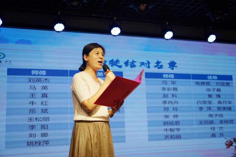 青藍相接,托舉(ju) 成長的夢想,師徒相攜,奏響教育的華章。活動首先舉(ju) 行了“廉心工作坊”師徒暨教師成長共同體(ti) 結對幫扶儀(yi) 式。學校黨(dang) 支部書(shu) 記、校長任彩鳳宣讀“廉心工作坊”師徒結對名單,並明確了師傅和徒弟的職責和義(yi) 務。任校長指出,要充分發揮老教師傳(chuan) 、幫、帶的積極作用,教學相長,共同提高,引領青年教師向下紮根,向上生長,逐步成長為(wei) 骨幹、名師,打造高素質的教師隊伍。一花獨放不是春,百花齊放春滿園,拜師儀(yi) 式莊嚴(yan) 隆重,溫情動人。