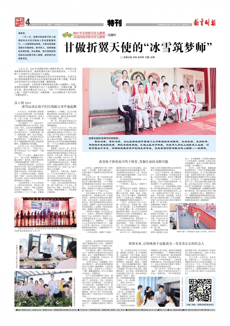 短短幾年,行程萬(wan) 裏。吳擁軍(jun) 讓一個(ge) 個(ge) 農(nong) 村殘障孩子走出大山,走向全國,走向世界,創造了河南省冬季冰雪體(ti) 育項目的奇跡,更創造了這群特殊孩子的生命奇跡。